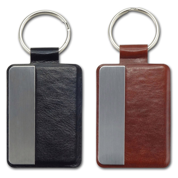 מחזיק מפתחות עור עם לוחית מתכת.