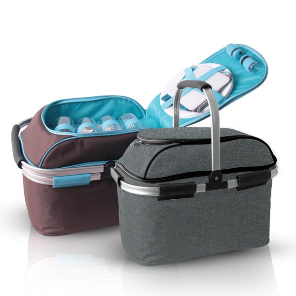 צידנית ידית אלומיניום 40x25x23 ס"מ, בצורת סלסלה. נפח - 23 ליטר.